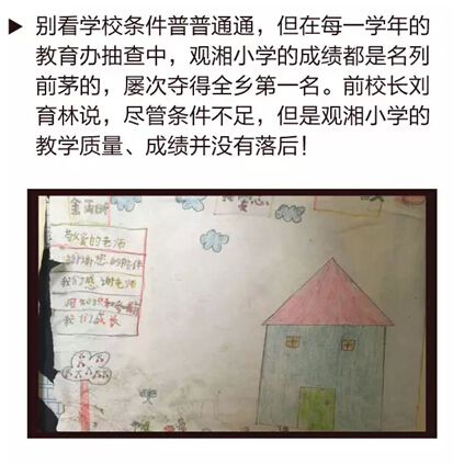 业主所荐两个教学点分别是地处偏僻的糖铺中心完小及位于城郊的观湘小学,其中,糖铺小学面临着被拆撤、孩子们离家求学的紧迫境况,而教学质量很高、学生成绩优异的观湘小学亟待提升教学条件。