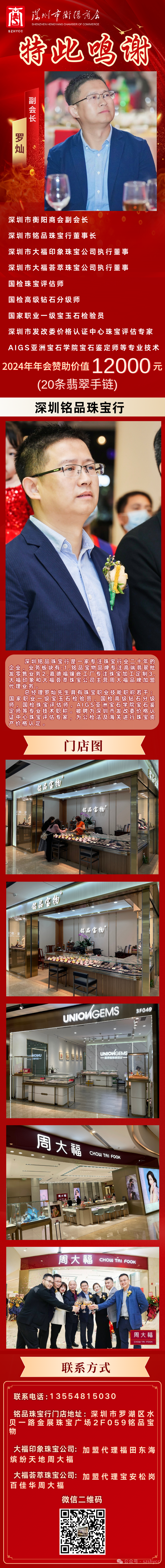赞助鸣谢——深圳市铭品珠宝行董事长罗灿实物赞助