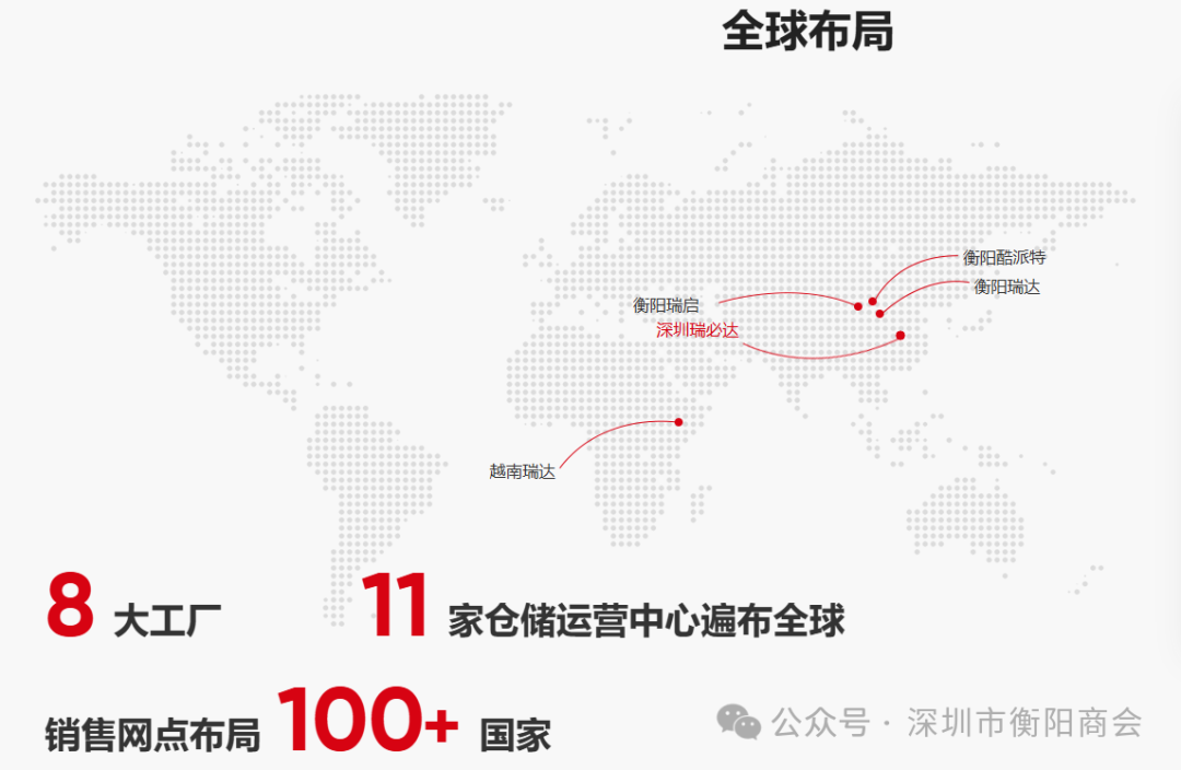 瑞达在中国和越南共设有8大生产基地,11个全球仓储物流中心,100多个国家销售网点,包括深圳瑞达、深圳瑞必达、衡阳瑞达、越南瑞达、衡阳瑞启、酒泉瑞启、衡阳酷派特以及衡阳电池材料园,确保我们的产品能够迅速响应服务全球市场需求。