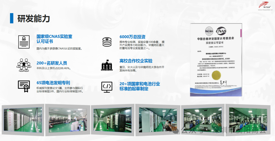 此外,我们还拥有国家级CNAS实验室,拥有200余项国家级发明专利,产品种类多达1000余款,其中包括固态铅电池、IDC专用铅酸电池、UPS电池以及锂电池等。通过持续的研发、生产、销售与服务,已构建起完善的新能源产业生态链。产品广泛应用于电网侧、电源侧、工商业储能、家庭储能、轨道交通、通信基站、数据中心等多个领域。